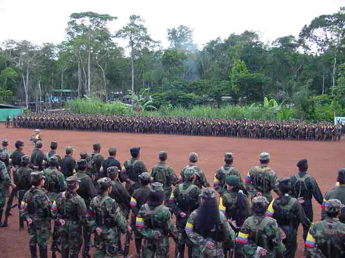 Kolumbien ist ein Land, das von einer jahrzehntelangen Konfrontation im sozialen und politischen Bereich geprägt ist. Die FARC-EP sind als politisch-militärische und revolutionäre Organisation ein wichtiger Baustein in den sozialen Kämpfen. Die Geschichte der revolutionären Linken kann nicht ohne die Guerilla geschrieben werden, die als Armee des Volkes die Interessen der Armen und Bauern verteidigt und Ausbeutung, Enteignung, Ausgrenzung und staatliche Repression als Übel der bisherigen Regierungen sieht, die vorrangig damit beschäftigt waren, die Oligarchie zu unterstützen. In Kolumbien hat die herrschende Klasse, schreckliche Verbrechen, Vertreibung und Flucht der Armen in ländlichen Gebieten, Städten und Gemeinden zu verantworten. Soziale, wirtschaftliche und politische Ungleichheit gehen einher mit einer Regierung, die mittels Staatsterrorismus, begangen durch die paramilitärischen Einheiten, die Opposition ausschalten will. Die Verletzung der elementarsten Menschenrechte und des humanitären Völkerrechts sind Systematik dieses willkürlichen und ungerechten Regimes, welches nur die Interessen einer kleinen Minderheit vertritt. Das kolumbianische Land hat den Kampf um Souveränität und Gerechtigkeit mit dem Blut von Zehntausenden seiner besten Männer, Frauen und jungen Menschen bezahlt.